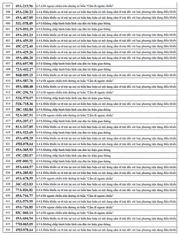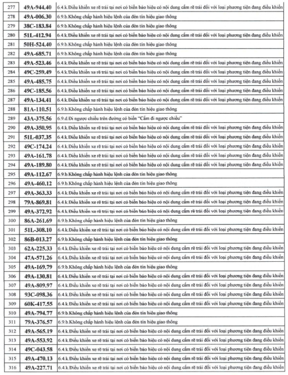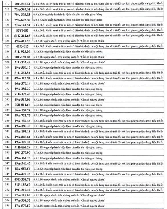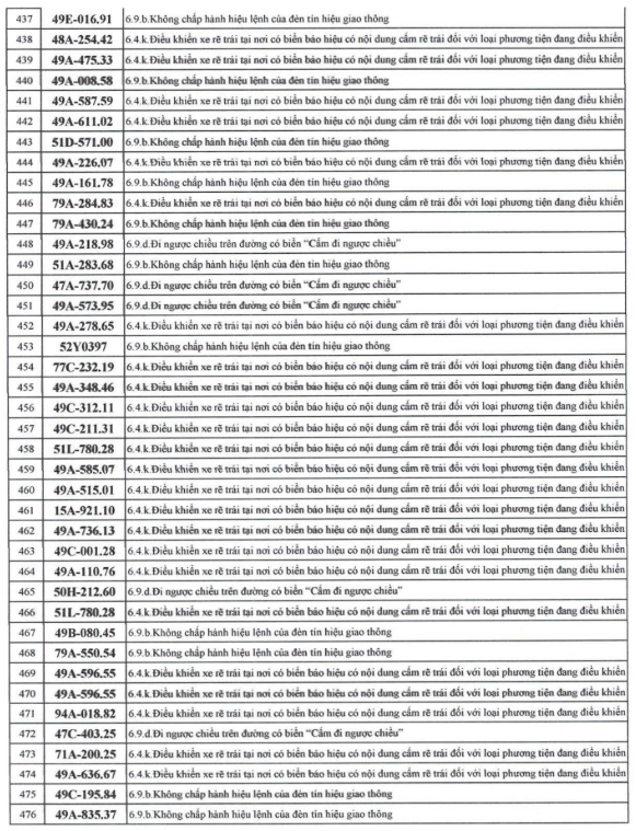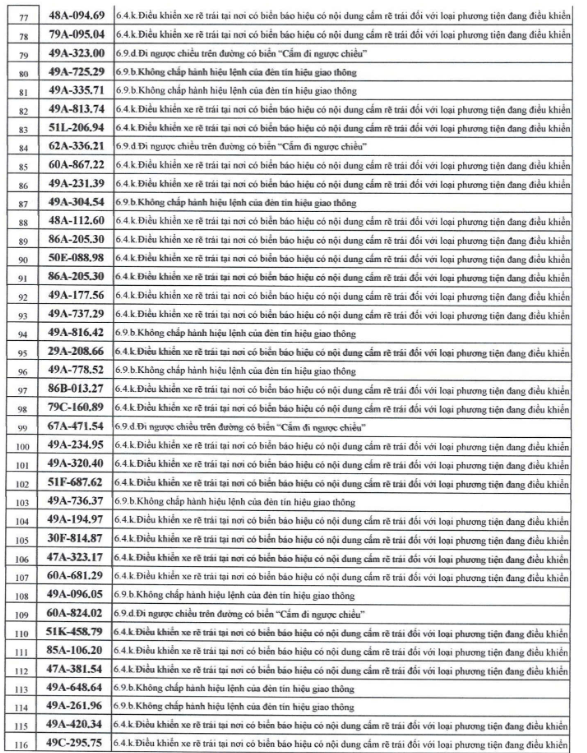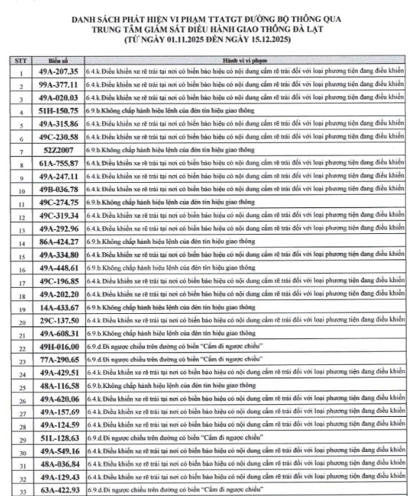 Ngày 24/12, Phòng Cảnh sát Giao thông – Công an tỉnh Lâm Đồng đã thông báo kết quả ghi nhận phương tiện vi phạm giao thông đường bộ từ ngày 01/11/2025 đến ngày 15/12/2025. Theo đó, có 500 trường hợp vi phạm phạt nguội trong thời gian này với các lỗi thường gặp là đi ngược chiều, không chấp hành hiệu lệnh của đèn tín hiệu giao thông… Trong thời hạn 30 ngày (kể từ ngày vi phạm), yêu cầu chủ phương tiện, tổ chức, cá nhân có liên quan đến vi phạm hành chính liên hệ để nộp phạt.Danh sách phạt nguội cụ thể như sau: