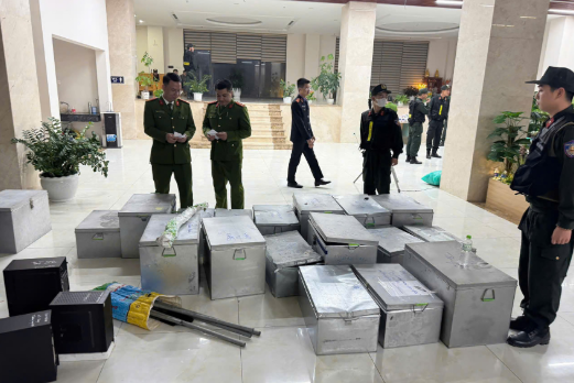 Lực lượng công an cũng đã đồng loạt khám xét trụ sở Công ty TNHH Quan Minh tại đặc khu Vân Đồn, tỉnh Quảng Ninh và chỗ ở của các đối tượng có liên quan. Tại đây, lực lượng chức năng thu giữ hàng chục thùng tài liệu, dữ liệu điện tử, vũ khí quân dụng và chất ma túy.