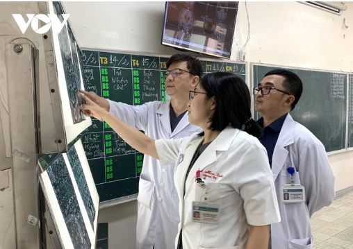 Bác sĩ Mai Linh tỉ mỉ xem các hình ảnh rồi cùng lãnh đạo khoa thống nhất phương án cho ca phẫu thuật.