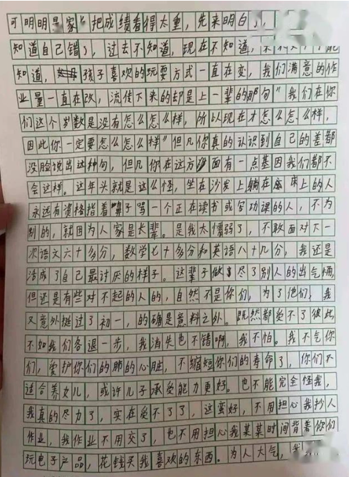 “Con không tiêu xài bừa bãi. Số tiền con dành dụm từ tiền mừng tuổi và tiền tiêu vặt – tổng cộng 30.000 NDT – con để dưới gầm bàn. Xin bố mẹ hãy chăm sóc bà ngoại, bà đã già rồi.”