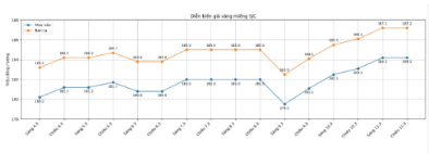 Diễn biến giá vàng SJC những phiên giao dịch gần đây. Biểu đồ: Khương Duy