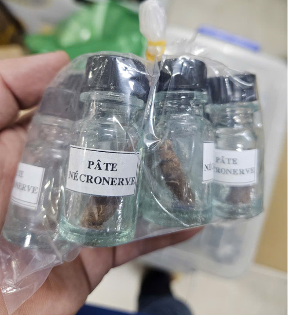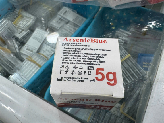 Tại đây, công an phát hiện cơ sở đang bày bán số lượng lớn sản phẩm ArsenicBlue 5g và Pâte Nécronerve (thường gọi là thuốc di:ệt tủy dùng trong nha khoa).