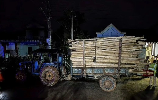 Chiếc xe máy cày chở gỗ keo tràm đã va chạm với xe gắn máy khiến 2 chị em tửvong.