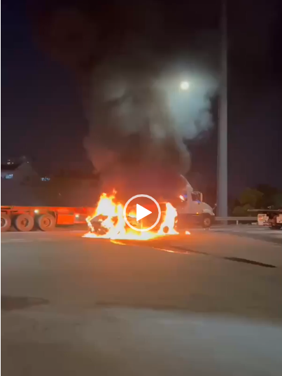Tuy nhiên, ngọn lửa nhanh chóng bùng phát dữ dội, bao trùm toàn bộ phương tiện. Chỉ trong tích tắc, “biển lửa” đỏ rực một góc đường.