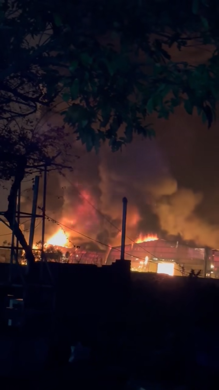 Lúc 0h10, ngọn lửa tiếp tục bùng lên nhanh trên diện tích hàng trăm mét vuông. Nhân chứng tại hiện trường cho biết khu xưởng này có kết cấu chủ yếu bằng tôn, khung sắt. Nhiều kết cấu bị đổ sập do sức nóng lớn.