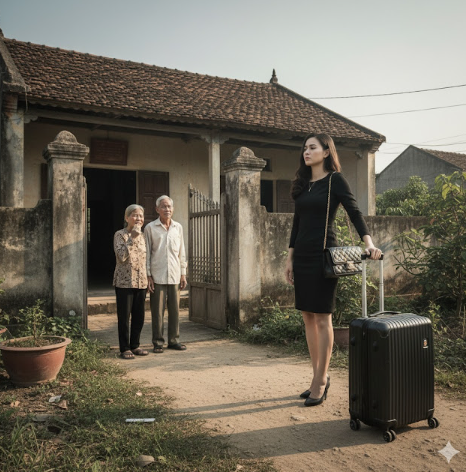 Trên tay chị là chiếc vali nặng trĩu, vừa mở ra đã thấy toàn là tiền mặt và giấy tờ bất động sản. Mẹ òa khóc, cha run rẩy tưởng như gặp lại người từ cõi chết trở về. Cả xóm ùa đến xem, ai cũng mừng rỡ.