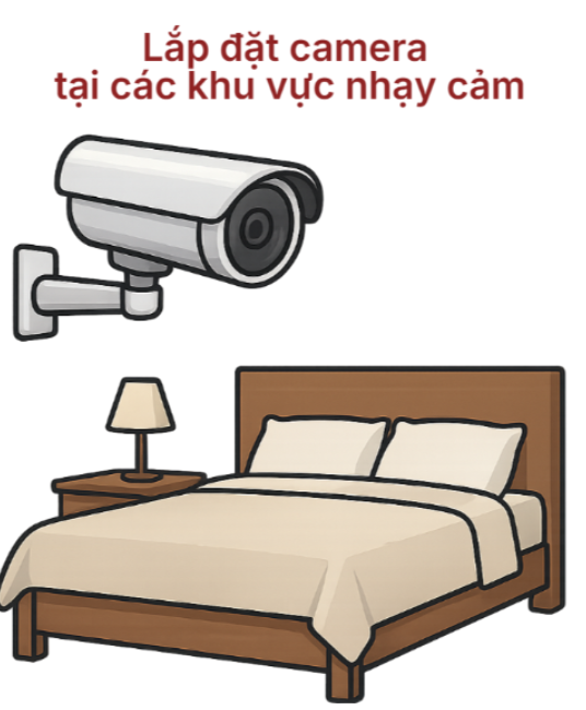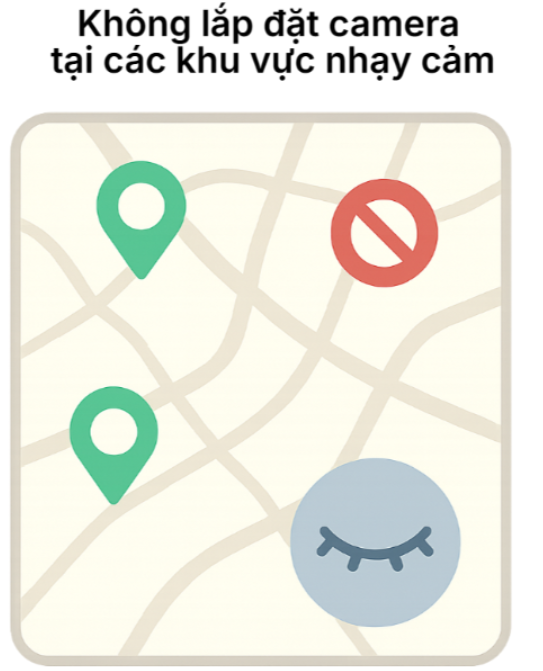 Không lắp đặt camera tại các khu vực nhạy cảm (phòng ngủ, phòng thay đồ,…) nếu như không thực sự cần thiết; hoặc sử dụng chức năng che chắn vật lý khi không sử dụng.