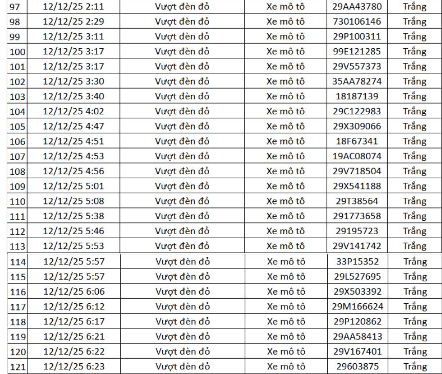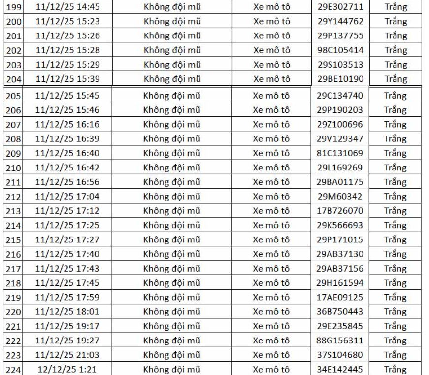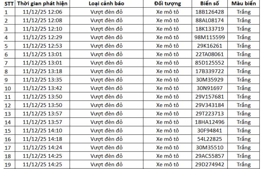 Dưới đây là danh sách vi phạm được camera AI ghi nhận do Cục CSGT công bố.
