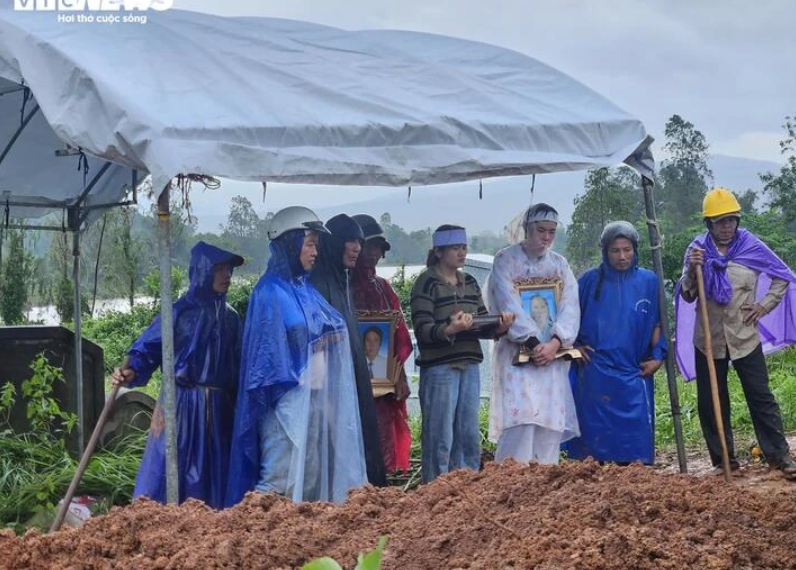 Nhìn thân nhân run rẩy ôm di ảnh họ, nhìn 3 người con cùng lúc mất cả cha lẫn mẹ ôm chặt nhau trong mưa, trong đó bé út mới 10 tuổi, họ hàng và làng xóm người gạt nước mắt, người cố kìm tiếng nấc nghẹn xót xa.