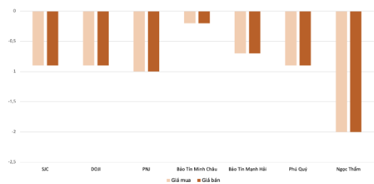 Mức điều chỉnh giảm mạnh nhất kéo giá giao dịch vàng nhẫn tại Ngọc Thẩm thấp hơn hẳn mặt bằng chung. So với các doanh nghiệp phía Bắc, giá vàng nhẫn “4 số 9” tại Ngọc Thẩm thấp hơn từ 7 triệu – 8 triệu đồng/lượng.