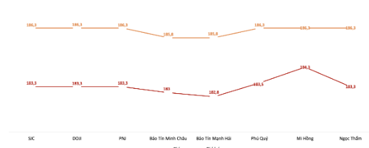 DOJI, PNJ và Ngọc Thẩm cũng đồng loạt niêm yết giá mua, bán vàng miếng SJC chốt phiên sáng ở ngưỡng 183,3 triệu – 186,3 triệu đồng/lượng, giảm 900 nghìn đồng/lượng đối với cả hai chiều mua và bán.