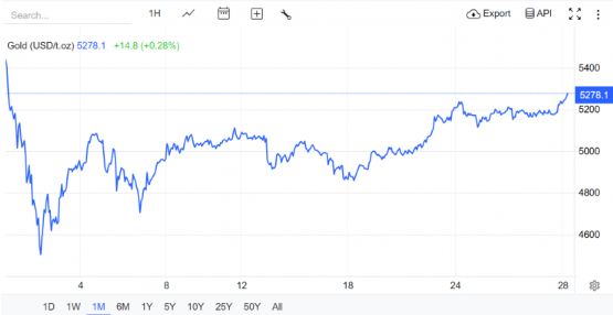 Tới 8h30 sáng 24/2 (giờ Việt Nam), giá vàng giao ngay tại thị trường châu Á giảm khoảng 90 USD/ounce, tương đương 1,9%, xuống còn 5.160 USD/ounce. Trước đó chỉ vài giờ, kim loại quý này vừa có một phiên bứt phá mạnh trên sàn New York, leo từ vùng 5.050 USD lên sát 5.250 USD/ounce trong bối cảnh nhà đầu tư toàn cầu gia tăng phòng thủ trước rủi ro thuế quan và địa chính trị.