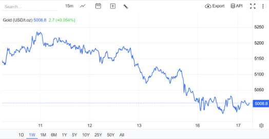 Giá vàng thế giới giao ngay chốt phiên tại thị trường Mỹ vào rạng sáng ngày hôm qua (giờ Việt Nam) ở quanh mức 5.010 USD/ounce, giảm 9 USD/ounce so với chốt phiên tuần trước đó.