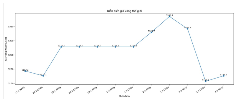 Diễn biến giá vàng thế giới những phiên giao dịch gần đây. Biểu đồ: Khương Duy