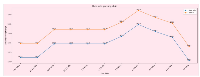 Diễn biến giá vàng nhẫn những phiên giao dịch gần đây. Biểu đồ: Khương Duy