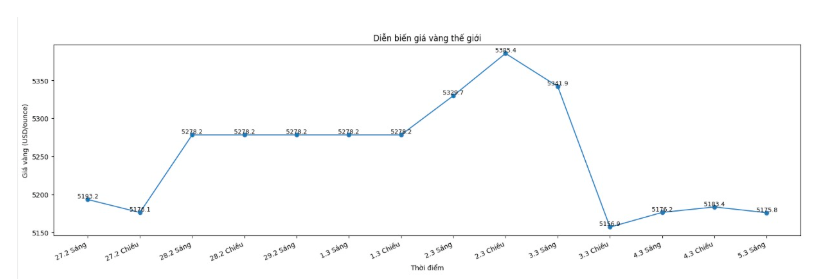 Lúc 9h05, giá vàng thế giới niêm yết quanh ngưỡng 5.175,8 USD/ounce, gần như đi ngang so với một ngày trước.