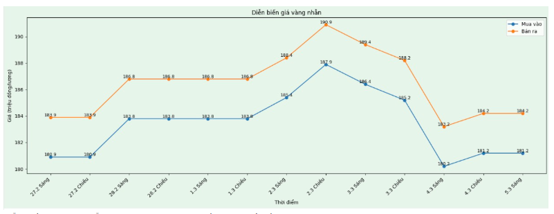 Bảo Tín Minh Châu niêm yết giá vàng nhẫn ở ngưỡng 182-185 triệu đồng/lượng (mua vào – bán ra), tăng 800.000 đồng/lượng cả hai chiều mua vào và bán ra. Chênh lệch giá mua vào – bán ra ở ngưỡng 3 triệu đồng/lượng.