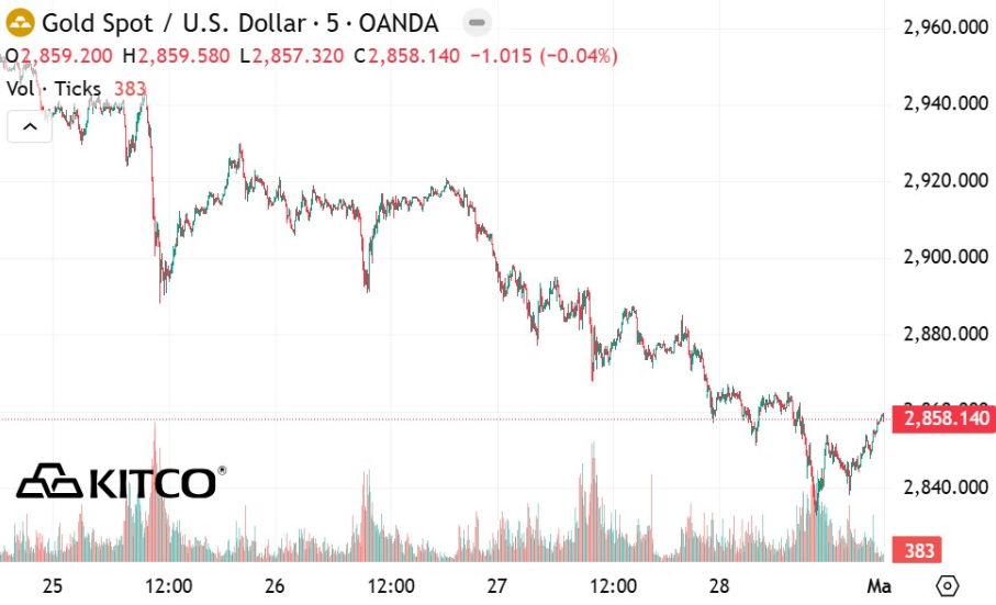 Tính đến 6h00 ngày 1.3, giá vàng thế giới niêm yết trên Kitco ở ngưỡng 4.858,1 USD/ounce, giảm 17,7 USD/ounce so với cùng thời điểm phiên trước.