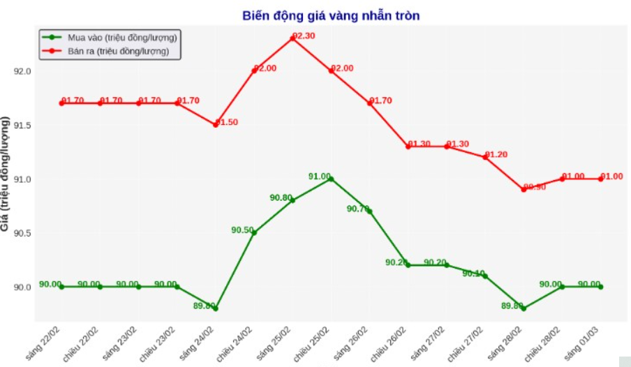 Diễn biến giá vàng nhẫn những phiên gần đây. Biểu đồ: Phan Anh