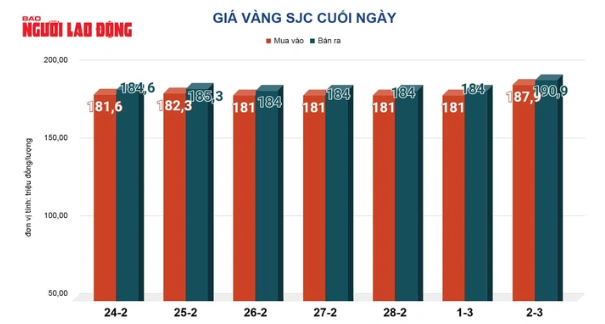 (NLĐO) – Giá vàng hôm nay, 3-3, lao xuống khi tâm lý lo ngại rủi ro địa chính trị tại Trung Đông dần hạ nhiệt, đồng USD tăng giá mạnh mẽ…