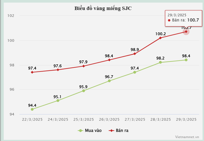 Đến 9h23′, giá vàng 9999 của SJC tăng thêm 300 nghìn đồng/lượng ở chiều mua vào và bán ra so với đầu giờ sáng, lên mức kỷ lục 136-140 triệu đồng/lượng (mua vào – bán ra).