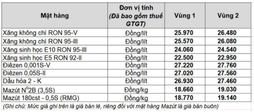+ Kho Bắc Ninh: Dầu Diesel 0,05S: 0 đồng/lít; xăng RON 95 – III: 0 đồng/lít.