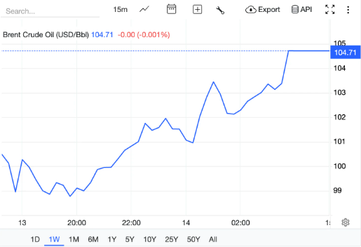 Trading Economics ghi nhận giá dầu Brent mở cửa phiên giao dịch tối Chủ nhật tăng khoảng 3%, vượt mốc 105 USD/thùng, mức cao nhất kể từ tháng 7 năm 2022, khi cuộc chiến ở Trung Đông bước sang tuần thứ ba sau các cuộc tấn công của Mỹ vào các mục tiêu quân sự trên đảo Kharg.