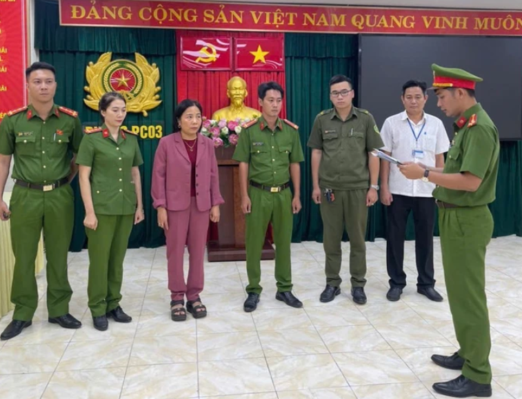Đối tượng Nguyễn Thị Chung tại Cơ quan Công an. Ảnh: CA Hưng Yên