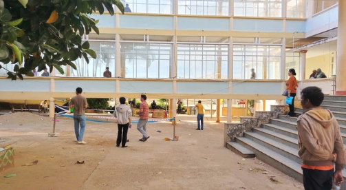 Hình ảnh người đàn ông đ:ứ:ng trên khu vực c:ầu n:ối của 2 tòa nhà tại Bệnh viện Đa khoa Gia Lai được người dân ghi lại