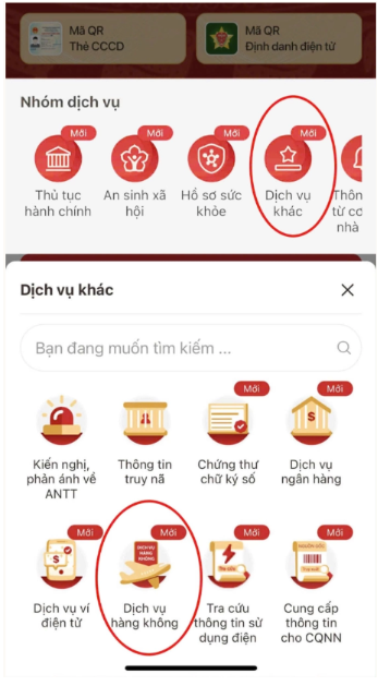 Hành khách tải app của Vietnam Airlines hoặc Vietjet, khi làm thủ tục trên VNeID sẽ liên thông với app của hãng. Từ đó thao tác kết nối thủ tục nhanh hơn.