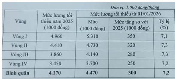 Theo Nghị định 293/2025/NĐ-CP, mức lương tối thiểu vùng từ 1/1/2026 được quy định như sau: