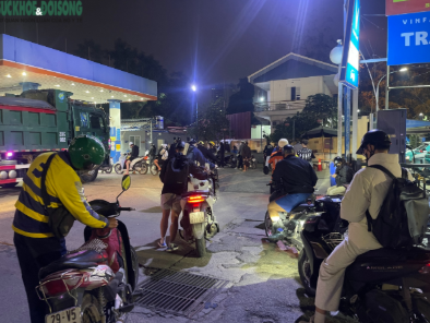 Tại khu vực Lê Quang Đạo, khoảng gần nửa đêm, lượng xe đổ về liên tục. Từ khu vực cột bơm kéo dài ra tận lối vào, xe máy xếp thành hàng. Người đến sau tự giác nhập hàng, tắt máy chờ đợi. Theo ghi nhận, phần lớn là lao động tự do, tài xế xe công nghệ, người làm ca đêm.
