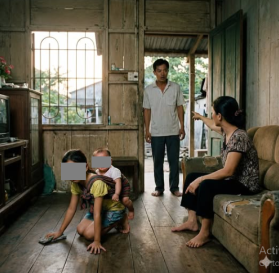 Con gái tôi — tám tuổi — đang quỳ xuống lau sàn. Trên lưng nó cõng em trai mới hai tuổi. Thằng bé ngủ gục, đầu gục vào vai chị. Hai tay con bé run run, nhưng vẫn cố lau cho sạch từng vệt nước.