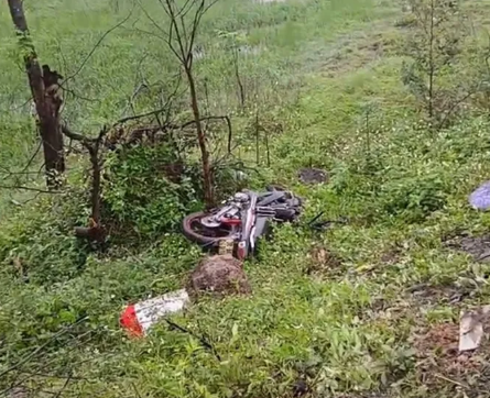 Xe máy bị văng xuống taluy âm đường