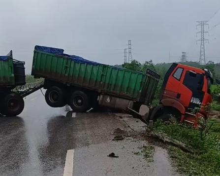 Xe đầu kéo chắn ngang quốc lộ