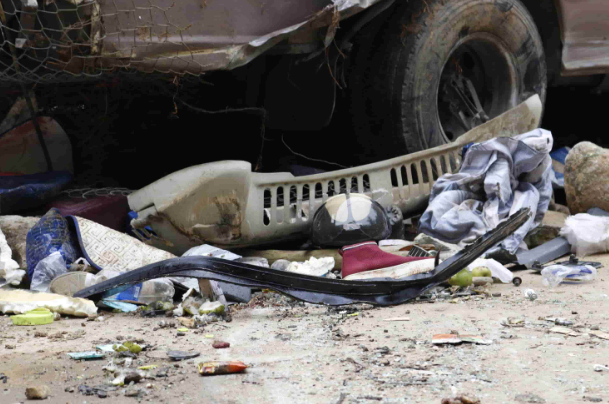 Xe chở đoàn thiện nguyện gặp tai nạn khi còn cách điểm trường trao quà chừng 3km. Ảnh: Văn Đức